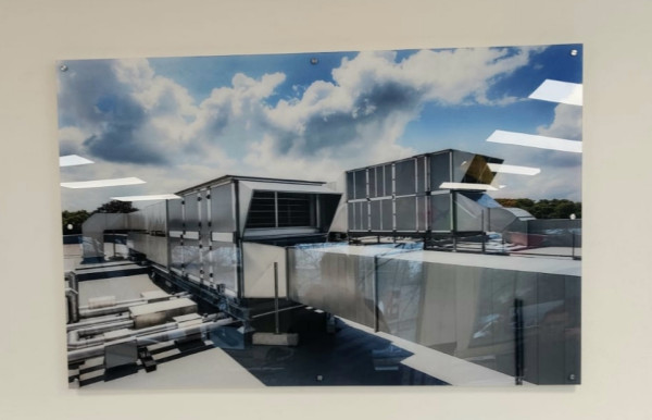 Met een zelf gekozen print aan de wand krijgt de kantoorruimte een totaal andere uitstraling. De print wordt afgedrukt op hoogwaardig acrylaat en heeft een luxe en strakke uitstraling. De schilderijen zijn voorzien van een blind ophangsysteem zodat het schilderij als het ware zweeft. Hierdoor krijgt de muur een moderne uitstraling.